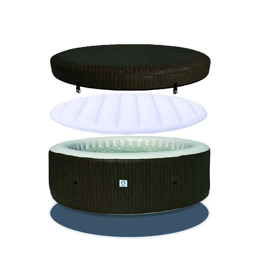 הג’קוזי כולל יריעת הגנה תחתונה ומכסה מתנפח מחוזק עם קליפסי נעילה לבטיחות משופרת ולשמירה על חום המים.